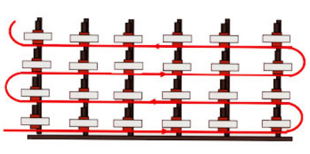 絲餅在整經(jīng)機上依出箱順序按此上架可減低由絲餅間造成的不均勻性.